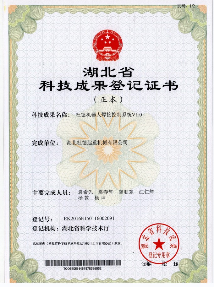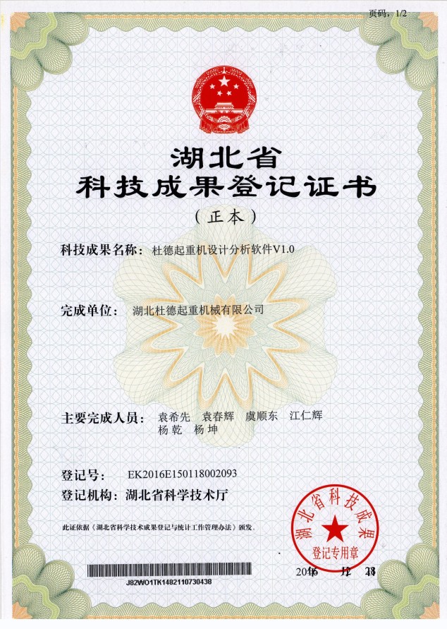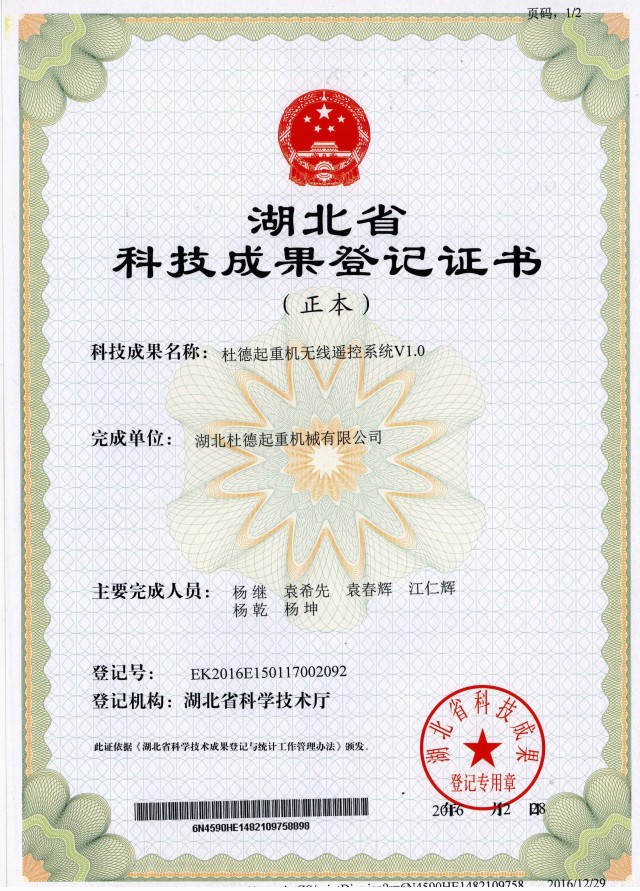 科技成果登記證書