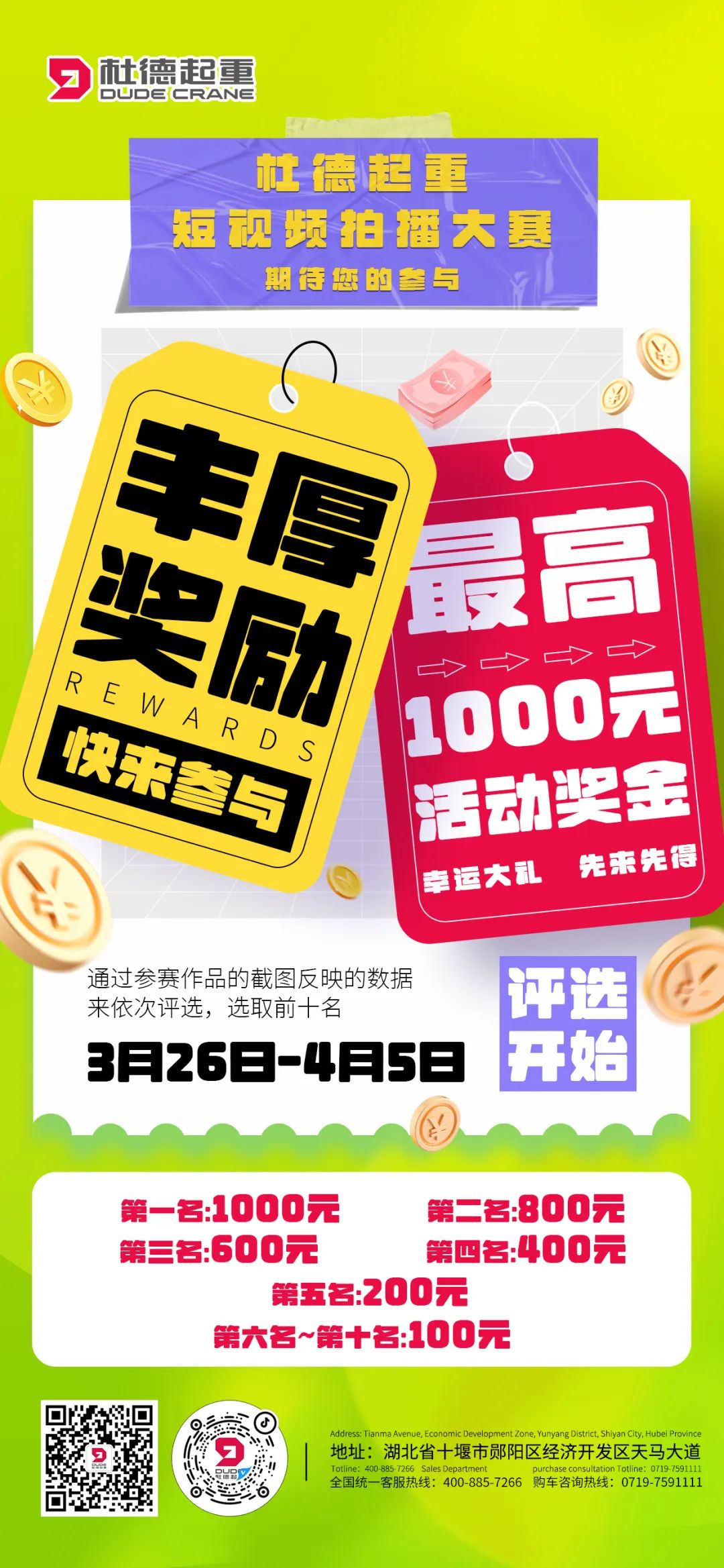 杜德起重 短視頻拍播大賽 獎勵豐厚 快來參加