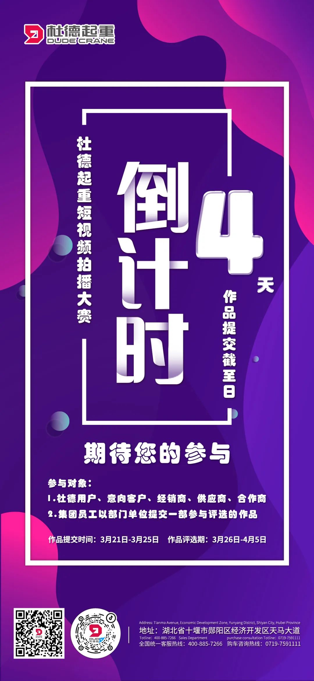 杜德起重 短視頻創作大賽 創作時間不多啦!