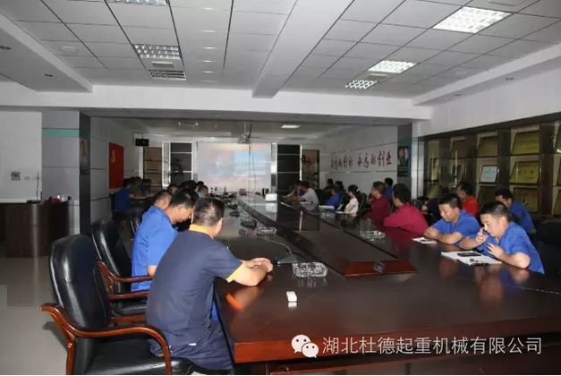 為慶祝中國共產黨成立95周年,湖北杜德起重機械有限公司在公司黨支部書記、總經理楊永明的帶領下,于2016年7月1日上午10:00,公司全體黨員和中層干部通過電視學習了習近平總書記發表的重要講話。