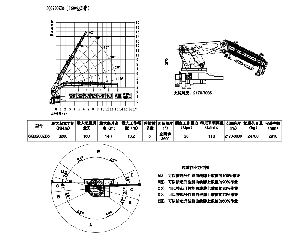 SQ3200(160T)折臂吊,我公司采購的Q370大型拋丸機設備到公司,杜德160T吊機大顯生手,在車間現場協助吊運、安裝設備