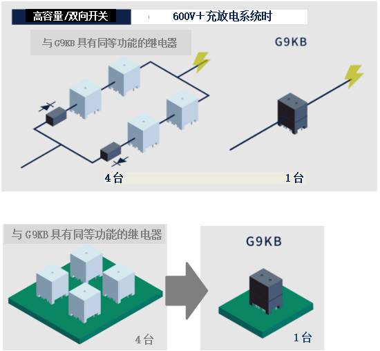 ● 在高電壓600V的系統上,可通過1臺繼電器實現充放電時直流電流的開關控制和安全阻斷。