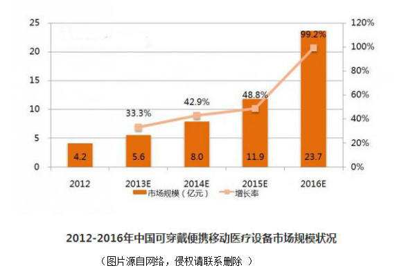 這里我們給大家介紹一款智能手環(huán),配有OMRON高精度氣壓的傳感器(2SMPB),結(jié)合智能手環(huán),可測量和記錄老人的血壓、睡眠、心率等身體健康指標(biāo),自動生成健康報告,自動發(fā)送給提前預(yù)設(shè)的家人及家庭醫(yī)生,提出健康及飲食建議。如此完美的可穿戴設(shè)備,實在是讓人無法不愛!在醫(yī)療行業(yè),此類型的可穿戴設(shè)備發(fā)展還呈現(xiàn)上升狀態(tài)!如下圖描述: