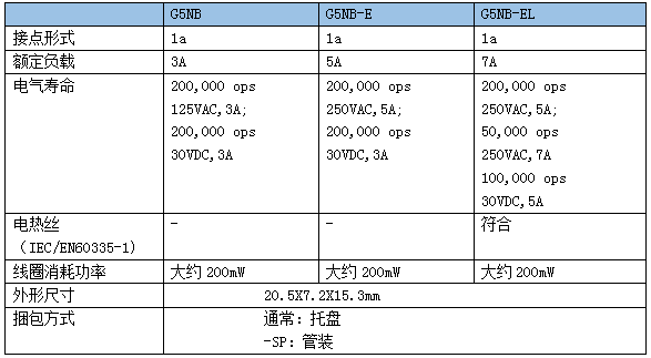 二、歐姆龍繼電器G5NB系列主要技術(shù)參數(shù):