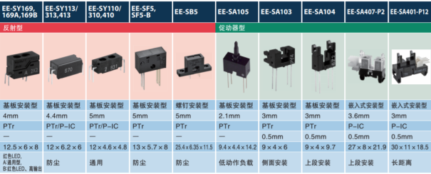 歐姆龍型號EE-SF5,SF5-B反射式光電開關(guān)可應(yīng)用于:小家電、照相機、投幣機、掃描儀、讀卡裝置、游戲機、ATM機、驗鈔、點鈔機、打印機、紙檢裝置、復(fù)印機、傳真機、掃描儀、條碼閱讀器、自動售貨機、自動售票機、等一些光電產(chǎn)品。