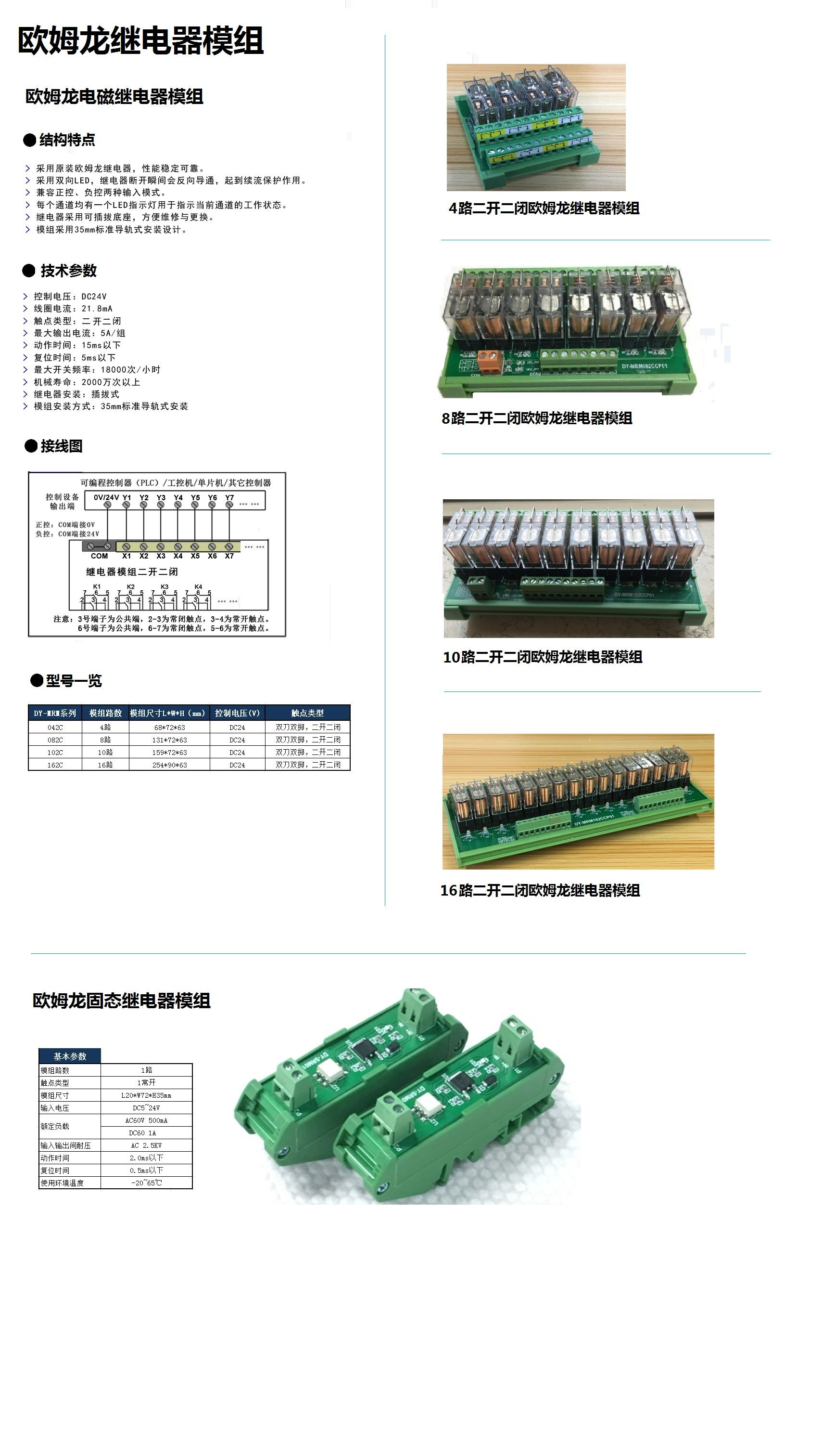 采用原裝歐姆龍繼電器,性能穩(wěn)定可靠。 采用雙向LED,繼電器斷開瞬間會反向?qū)?,起到續(xù)流保護作用。 兼容正控、負控兩種輸入模式。 每個通道均有一個LED指示燈用于指示當前通道的工作狀態(tài)。 繼電器采用可插拔底座,方便維修與更換。 模組采用35mm標準導軌式安裝設(shè)計。
