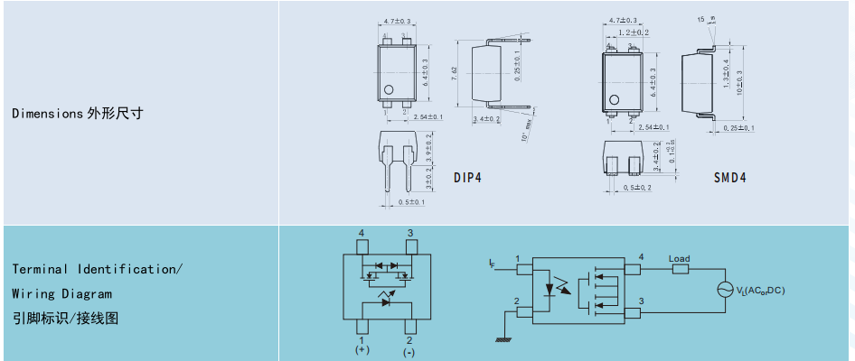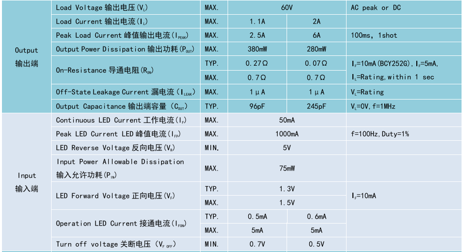 (Relay 光 MOS 繼電器 DIP4/SMD4),Product Model產品型號:BCY252、BCY252G,Contact Form 觸點形式:1a,Ambient Temperature 25°C測試環境溫度 25℃