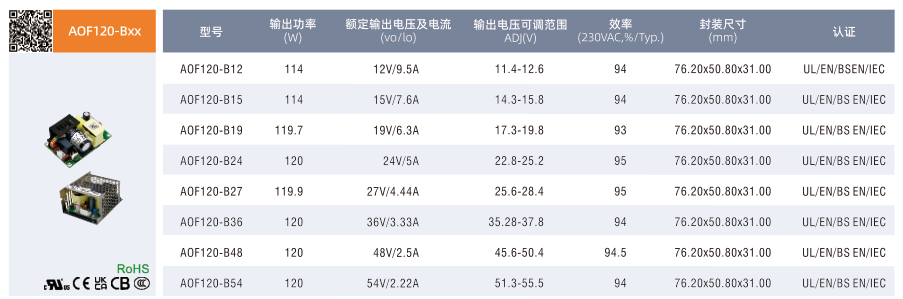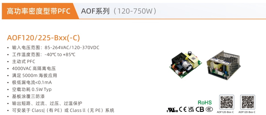 開(kāi)關(guān)電源高功率密度型帶PFC AOF系列(120-750W)