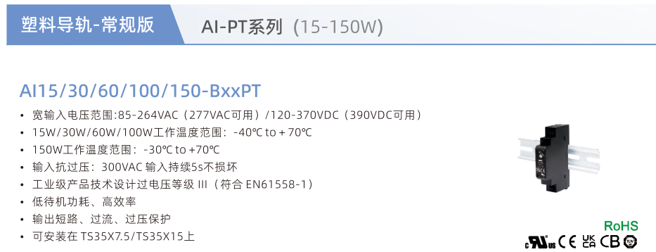 塑料導(dǎo)軌工業(yè)電源AI-PT系列(15-150W)