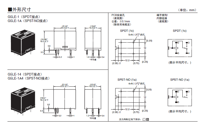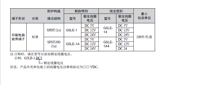 G5LE 印刷基板用功率繼電器 立方形單極10A功率繼電器 ? 非常適合各種應用,例如家電、OA設備和自動販售機等 ? 使用環境溫度85℃ ? 標準型號為UL B類線圈絕緣 ? UL、CSA、EN標準認證并符合《電氣設備與材料安全法》(最大300V) G5LE適用于家電、OA設備和自動販售機等