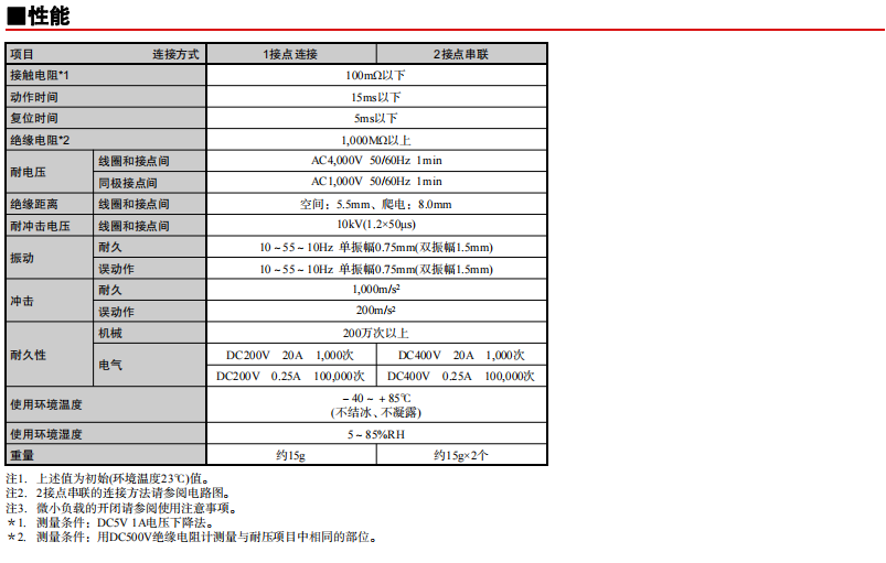 通過(guò)產(chǎn)品的2接點(diǎn)串聯(lián)實(shí)現(xiàn)了DC400V 20A雙向開(kāi)閉 寬度15.2mm的纖細(xì)尺寸實(shí)現(xiàn)了無(wú)論極性的DC200V 20A開(kāi)閉 功耗530mW的高靈敏度 (保持電壓50%的使用環(huán)境下實(shí)現(xiàn)更好的節(jié)能效果) 線圈和接點(diǎn)間的絕緣距離5.5mm以上,耐沖擊電壓10kV的高絕緣性 串聯(lián)連接取得了UL/TüV/CQC認(rèn)證