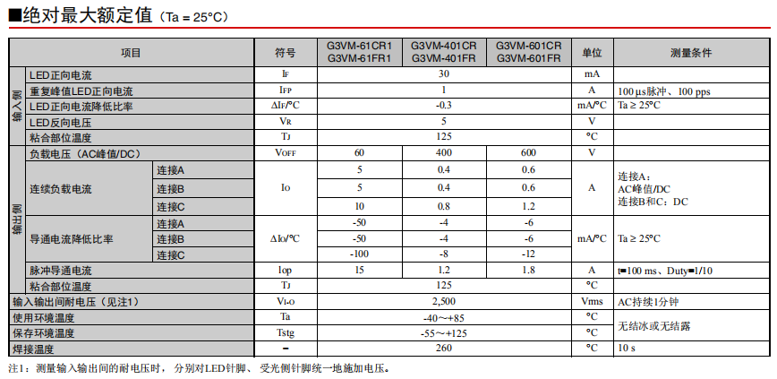 以DIP8針封裝,實(shí)現(xiàn)高級(jí)別的高容量化MOS FET繼電器 接點(diǎn)構(gòu)成 1a 負(fù)載電壓 60V 連續(xù)負(fù)載電流(最大)5A(10A) *