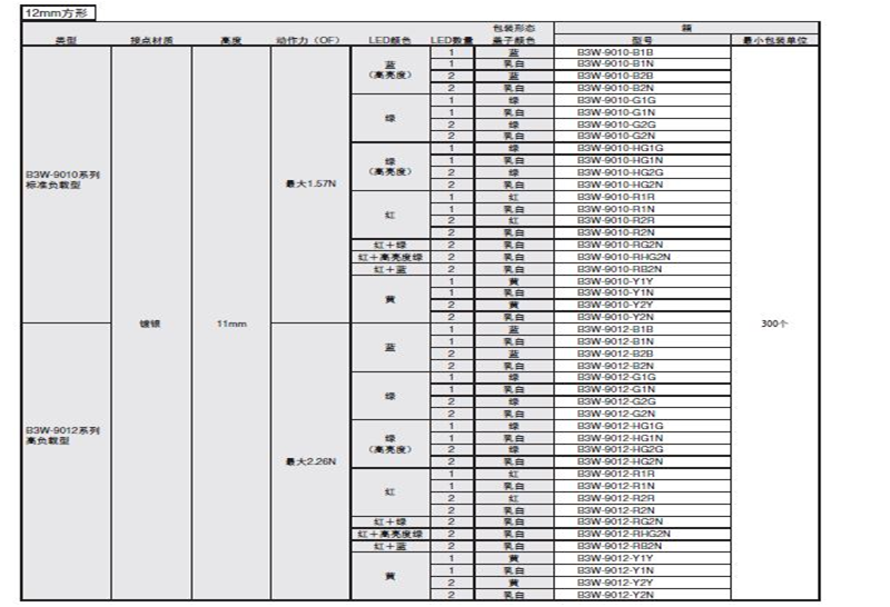 B3W-9000系列 照光式 LED小型帶燈輕觸開關