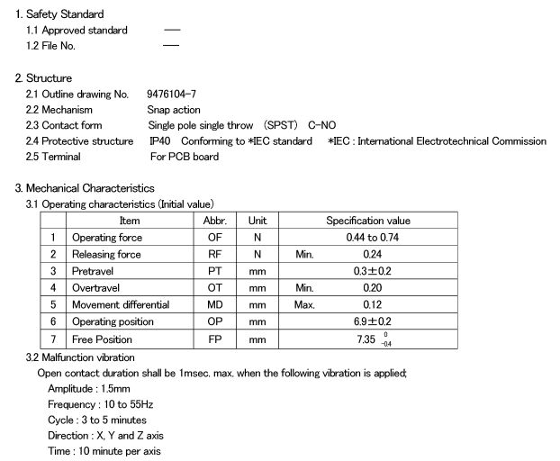 印刷基板用端子還備有獨(dú)立端子、直角端子。鼠標(biāo)開關(guān)的型號有: